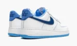White/blue calf leather Air Force 1 ’07 sneakers from NIKE featuring signature Swoosh logo detail. silver-tone logo plaque. contrasting heel counter. round toe. front lace-up fastening. logo patch at the tongue. branded insole and rubber sole. These styles are supplied by a premium sneaker marketplace. Stocking only the most sought-after footwear. they source and curate some of the most hard to find sneakers from around the world..