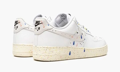 The Nike Air Force 1 Low ‘Paint Splatter’ is one of two colorways of the retro basketball and lifestyle shoe to feature an array of colorful paint splatters on their design. The multicolor. dripping paint splatters found throughout the shoe’s upper mimic the look of a shoe that appears as if it were worn on the feet of an artist during a studio session. Dashes of blue. red. yellow. and black paint drips can be found on the white leather base. including on the perforated toe and mid-panel and on the Sail leather Swoosh on both sides. Additional paint details highlight the look of the laces layered over the white nylon tongue. Nike goes as far as to construct its signature ‘Nike’ logo in a paint splatter design on the white nylon tongue tag. Additional paint graphics appear on the heel tab around the black ‘Nike Air’ insignia. The Sail rubber midsole features speckle detailing as a continuation of the model’s ‘Paint Splatter’ theme.