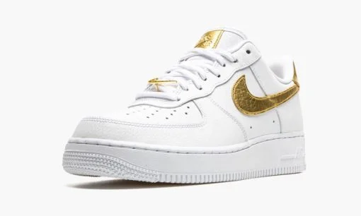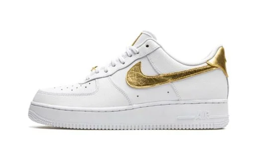 The Nike Air Force 1 Low ‘Gold Foil’ gives a luxurious look to the timeless and versatile silhouette. A staple in not only Nike’s seasonal footwear collections but in rotations of sneaker collectors around the world. the Air Force 1 is one of the most easy wearing and stylish shoes available. This ‘Gold Foil’ colorway is equipped with shiny gold leather accents on the Swoosh branding on either side. on the heel. and the tag stitched onto the white leather tongue. A gold Swoosh lace dubrae is integrated into the design of the shoelaces and the rest of the upper is finished off in a buttery cut of white pebbled leather. An embossed Swoosh can be found on the aforementioned heel tab and tonal ‘Air’ branding appears on the heel of the white rubber midsole. Release date: November 2020.