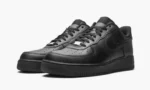 The Nike Air Force 1 Low ‘Triple Black’ sports a monochromatic all-black look for unlimited versatility. First released in 1982. the Air Force 1 has transcended its performance origins to become simply one of Nike’s premier lifestyle shoes. adored by opposing style disciples for its history. sleek silhouette. and comfort. Black leather appears on the perforated toe. mid-panel. and heel. Branding appears in the form of a tonal Swooshes on each side. ‘Nike Air’ embroidery on the heel. and a black nylon ‘Nike Air Force 1’ logo on the tongue. A silver ‘AF1’ emblem on the laces provides a touch of contrast on the otherwise stealthy shoe. Black Air branding dots the heel of the midsole to complete the look.