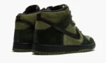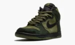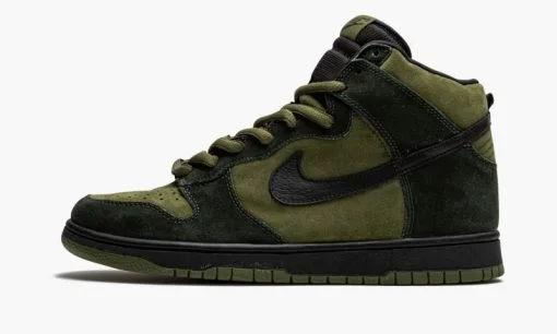 The Nike SB Dunk High Pro ‘Hulk’ is an extremely rare colorway that was designed by then Nike SB skate team member Todd Jordan in 2003. Despite its nickname. the design of the ‘Hulk’ was actually meant to mimic the colors of a traditional woodland camouflage pattern. not the ultra-strong comic book character. As for its design. green suede appears on the perforated toe and on the mid-panel. collar. and heel. A darker shade of forest green suede contrasts the look on the forefoot. eyelets. and heel. A black tumbled leather Swoosh appears on both sides and a green ‘Nike SB’ logo on the nylon tongue tag on the black mesh tongue. Unlike many Nike SB Dunk models of the ‘Hulk’s’ era. the shoe forfeits a thick padded tongue in favor of the standard tongue found on the non-skate Nike Dunk. The Nike SB Dunk High ‘Hulk’ is a classic Dunk release that is extremely desirable years after its debut in 2003. Release date: March 2003.