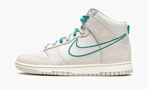 Light grey suede/leather Dunk High SE First Use ?C Green Noise sneakers from NIKE featuring signature Swoosh logo detail. contrasting panel detail. round toe. perforated detailing. front lace-up fastening. logo patch at the tongue. ankle-length. branded insole and rubber sole. These styles are supplied by a premium sneaker marketplace. Stocking only the most sought-after footwear. they source and curate some of the most hard to find sneakers from around the world..