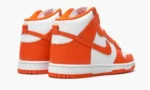 The Nike Dunk High ‘Syracuse 2021’ is the modern re-release of an original Dunk colorway from Nike’s groundbreaking ‘Be True to Your School’ collection of 1985. Along with several now-classic Dunks dedicated to some of the nation’s top college basketball teams of the ’80s. the ‘Syracuse’ returned in March 2021 on the Dunk Low to much fanfare. Here. the colorway is re-issued in its original high-top style and in full family sizing. The two-tone white-and-orange color block is true to the ‘OG’ release. Blazing Orange leather detailing can be found on the various panels atop the white leather base. The same fiery shade of orange is located on the side Swoosh branding. on the Nike detailing on the nylon tag stitched onto the white mesh tongue. and on the small pull tab on the back of the shoe. The Nike Dunk High ‘Syracuse’ is a revered design in the model’s storied history. Release date: March 10. 2021.