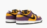 Inspired by the early ’90s era of skateboarding characterized by tiny wheels and giant pants. this Dunk Low is built in purple denim with orange suede accents.