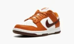 The Women’s Nike Dunk Low ‘Bronze Eclipse’ is a women’s-exclusive colorway of the vintage basketball shoe that arrives in unique. earth tone colors for a versatile. always-in-style look. Reminiscent of Dunk colorways from the early-to-mid 2000s. the ‘Bronze Eclipse’ features a white leather base with contrasting Sport Spice-colored leather overlays on the forefoot. eyelets. collar. and heel. A Bronze Eclipse leather Swoosh resides on either side of the shoe. A classic ‘Nike’ logo is embroidered on the heel and burnt orange-colored ‘Nike’ and Swoosh branding is printed on the white tag on the white nylon tongue. Burnt Orange laces complement the shoe’s autumn-ready appearance. Release date: November 24. 2021