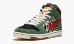 The Nike SB Dunk High ‘Dog Walker’ is a special colorway created for the unofficial holiday of 4/20. Nike SB’s 2019 release celebrating the marijuana smokers’ holiday featured a Dog Walker-themed Dunk High. The unique colorway features various colors of faux dog fur on its base with hairy green suede overlays and bright red textile Swooshes inspired by dog leashes. The outsole features pearlized white rubber with brown spots to symbolize stepping in dog poop. while the sockliner depicts a graphic collage of Nike employees’ dogs. Each pair also comes with a dog bone hang tag engraved with the classic dog name. ‘Sparky.’ The Nike SB Dunk High ‘Dog Walker’ released on April 20. 2019.