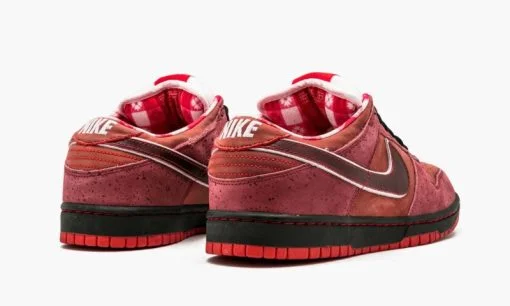 These Dunk Low Premium SB kicks from Nike are nicknamed Lobsters and they definitely live up to the name. The shoes are a collab with Massachusetts-based shop Concepts. which makes sense as New England is well-known for its lobster cuisine. Red dominates throughout while a black swoosh and some mild speckling provide contrast.