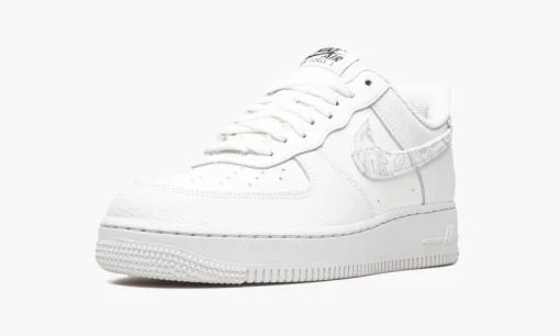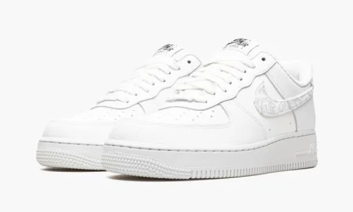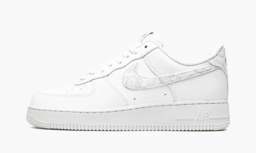 The Women’s Nike Air Force 1 Low White Paisley is a women’s-exclusive colorway of the retro basketball and lifestyle shoe that’s based on a classic makeup. but with a subtle twist. The shoe we’re referring to is the Air Force 1’s White on White colorway. Like that style. the White Paisley dons a monochromatic white appearance. but with a white paisley Swoosh on the sides and on the heel tab instead of the White on White’s tonal leather detailing. As for the rest of the design. white leather appears on the perforated toe. mid-panel. and leather overlays. Underfoot. a solid white rubber sole with tonal Air branding on the lateral side of the midsole completes the look.
