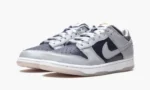 The Women’s Nike Dunk Low SP ‘College Navy/Grey’ is the women’s sizing of the low-top lifestyle shoe designed in a two-tone retro inspired colorway. A February 2021 release. the ‘College Navy/Grey’ is based loosely on a ‘Georgetown’ colorway. though the shoe bears no direct affiliation with the East Coast university. The perforated toe and mid-panel. collar. and heel are display a wearable College Navy shade of blue leather. The overlaid panels and Swoosh branding are dressed in light grey leather. On the back of the shoe. red Nike embroidered is stitched onto the grey heel overlay and red Nike detailing appears on the nylon tongue tag. A clear rubber outsole completes the clean look. Release date: February 25. 2021.