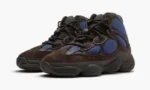 The adidas Yeezy 500 High ‘Tyrian’ is a Spring 2020 colorway that fuses vintage performance basketball aesthetics with hiking boots for a look in and of itself. Only the second colorway of the high-top Yeezy 500 to release. this version features a navy blue neoprene base along the forefoot. mid-panel. and collar. Supple brown suede and black leather overlays on the toe. mid-panel. and collar provide a contrasting appearance that riffs on hiking footwear. Unlike the previously released Slate Yeezy 500 High. this colorway introduces an adjustable lace toggle on top the black neoprene tongue. Recalling nostalgic technology from adidas’s archives. both the adiPRENE midsole and Feet You Wear outsole introduce a decidedly nostalgic element to this contemporary design. Release date: May 16. 2020.