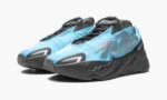 The adidas Yeezy Boost 700 MNVN ‘Bright Cyan’ is a June 2021 colorway of Kanye West’s popular ‘dad shoe’ that makes use of an attention-garnering color block. One of four Yeezy 700 models under the adidas Yeezy footwear umbrella. the MNVN stands out from the collection due to its no-sewn overlay design. bold reflective ‘700’ branding. and loud colorways. like the ‘Bright Cyan.’ Adidas dresses the lightweight nylon upper in Bright Cyan and places reflective ‘700’ detailing to either side that shines when exposed to light in the dark. A no-tie bungee lace system provides a futuristic look. Black and grey reflective panels accent the toe and heel. giving the shoe an evolutionary look when compared to early 700 releases. The ‘Bright Cyan’ rides atop a responsive Boost cushioned midsole. Release date: June 7. 2021.