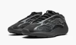 The adidas Yeezy 700 V3 ‘Dark Glow’ is a mostly monochromatic black colorway of the evolutionary shoe by Kanye West and adidas that was released in August 2021. Included in West’s Yeezy Day celebration. the ‘Dark Glow’ is similar to the ‘Alvah’ colorway that adidas debuted in April 2020. save for the newly implemented glow-in-the-dark RPU overlays layered over the ‘Dark Glow’s’ black Primeknit base. Contrasting grey monofilament stripes appear on both sides of the knit upper. Underfoot. adidas replaces the Boost cushioning found in many 700 styles for a lightweight EVA foam composition. Release date: August 2. 2021